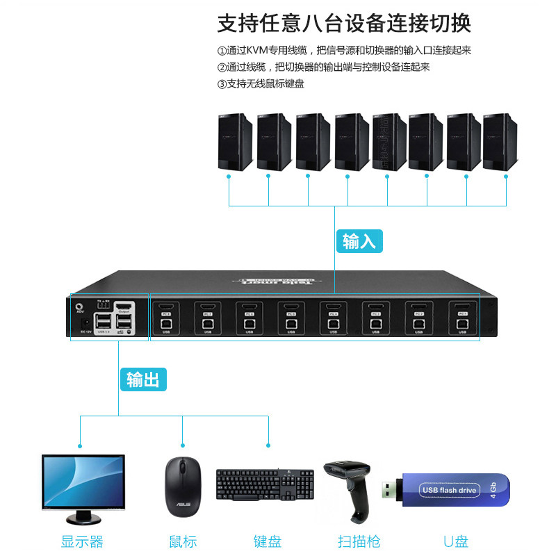 HDMI KVM 8 ports _4K30HZ_ not wired HDMI KVM 8 ports _4K30HZ_ with 8 lines HDMI KVM 8 ports _4K6