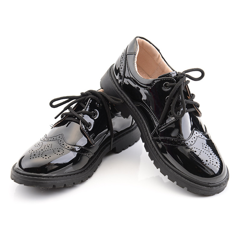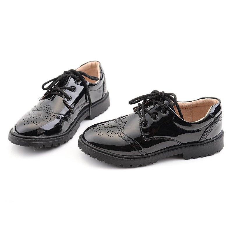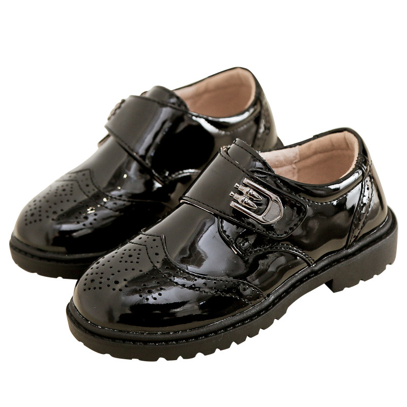 Boy leather shoes Black Inn Wind student Flower Boy Scout Children's Little Boy Performance Shoe Spring Children Black Leather Shoes