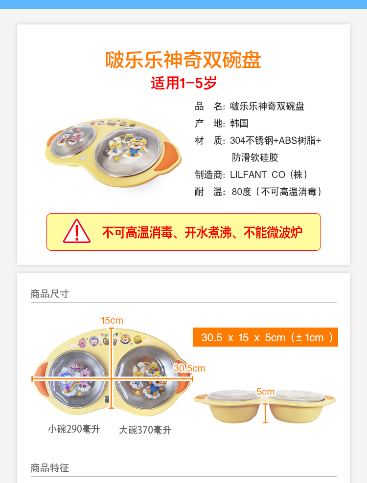 South Korea Pororo Children Stainless Steel Double Bowl Tray Cutlery Insulation Kid Home Double Bowl Pan Spoon Fork Box Suit