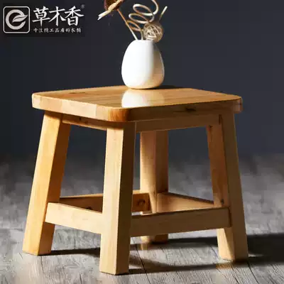 Plain wood color small square stool-pre-sale 30 days delivery return 15 yuan retro color small square stool