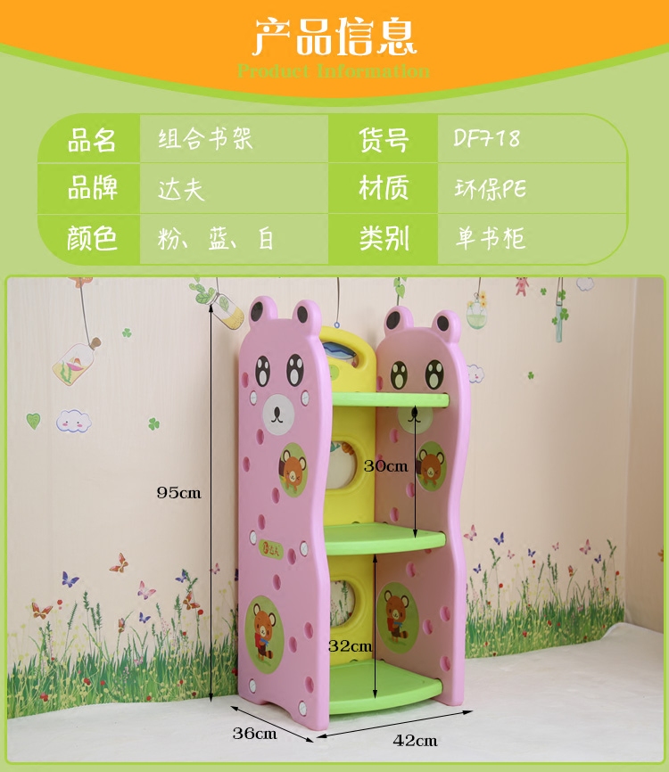 Children's plastic bookshelf Vertical household bookcase Kindergarten environmental protection cartoon magazine storage Student picture book display rack