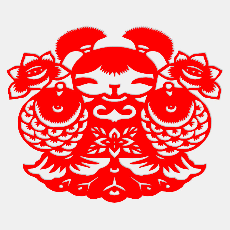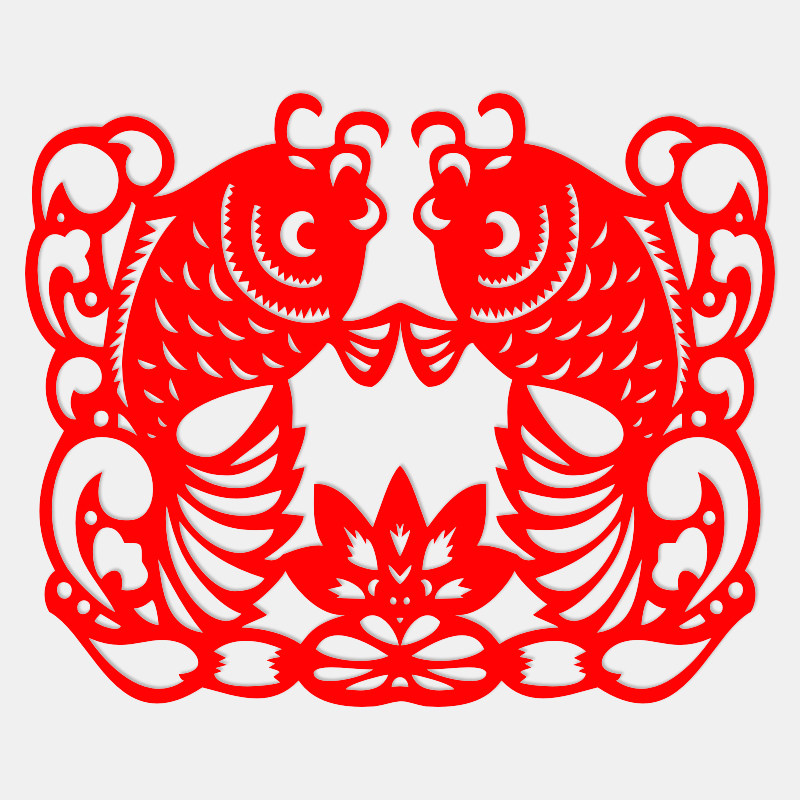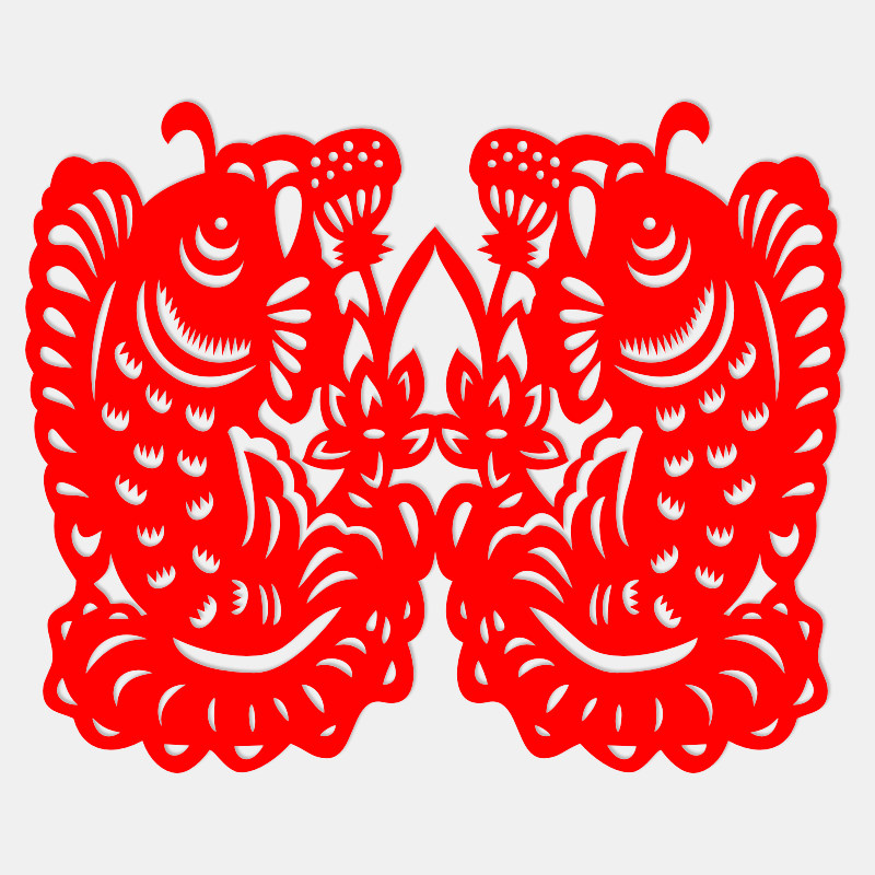 Art flower double fish cut paper year over year with auspicious folk happy character sticker handmade paper axisymmetric red paper engraving