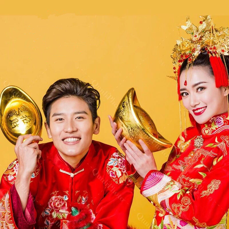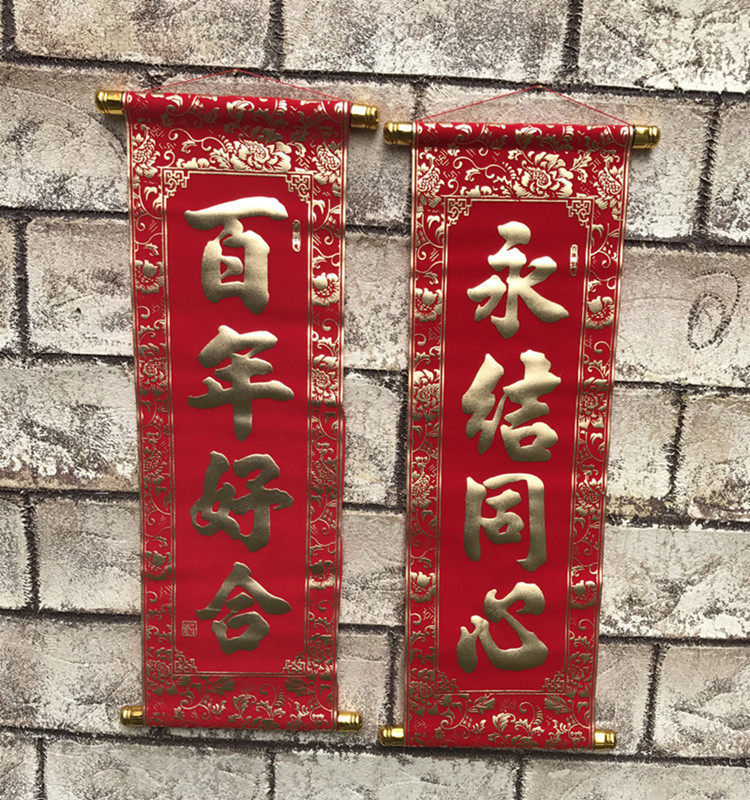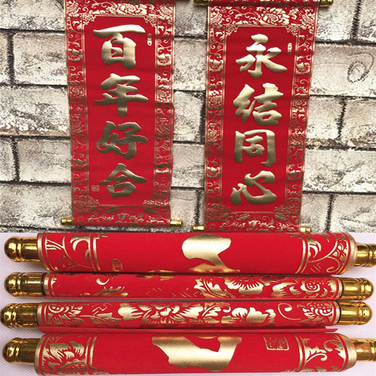Ancient Clothing Show and Chinese Wind Wedding Yarn Photography Props Suede couplets for couples hands with big meta-treasure wedding supplies swing pieces
