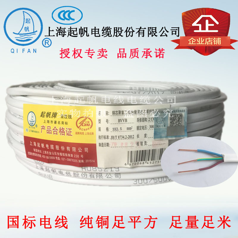 Pick-up wire BVVB2 core 3 core*0 5 0 1 5 1 5 2 5 4 square national standard home loaded sheath