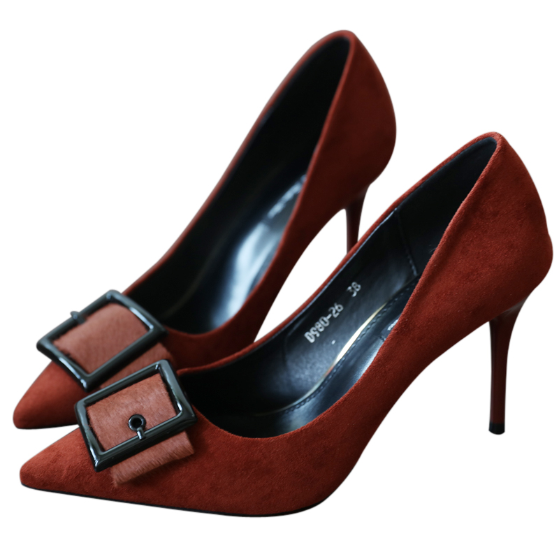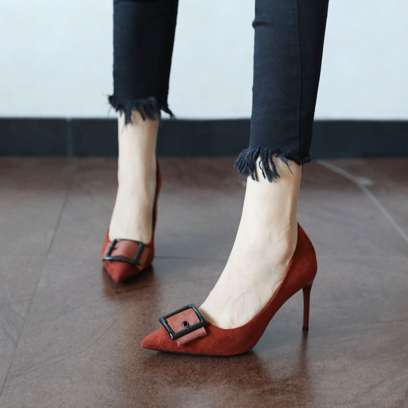 Retro red French Girl High Heels Spring 2020 New Square Buckle Korean version Joker Sexy Pointed Shoes