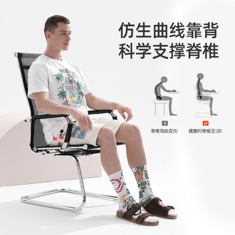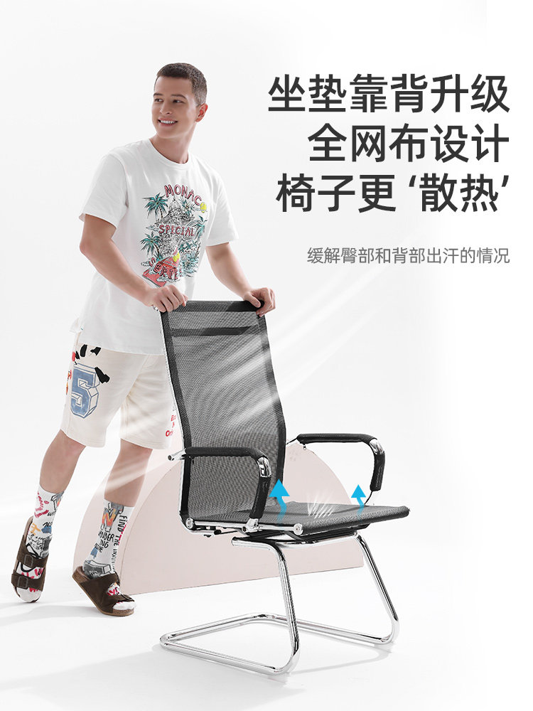 Goderly breathable mesh computer chair office chair simple bow frame chair business training reception chair conference chair