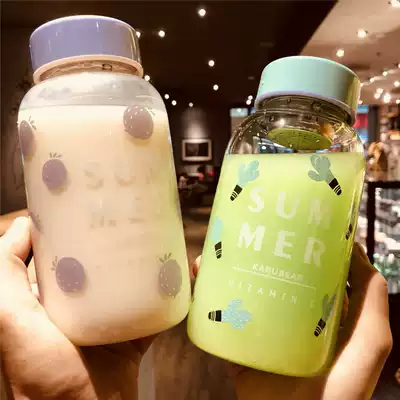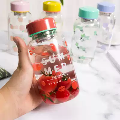Korean fruit literary glass creative fresh portable water cup Student transparent cup with tea leakage cup couple