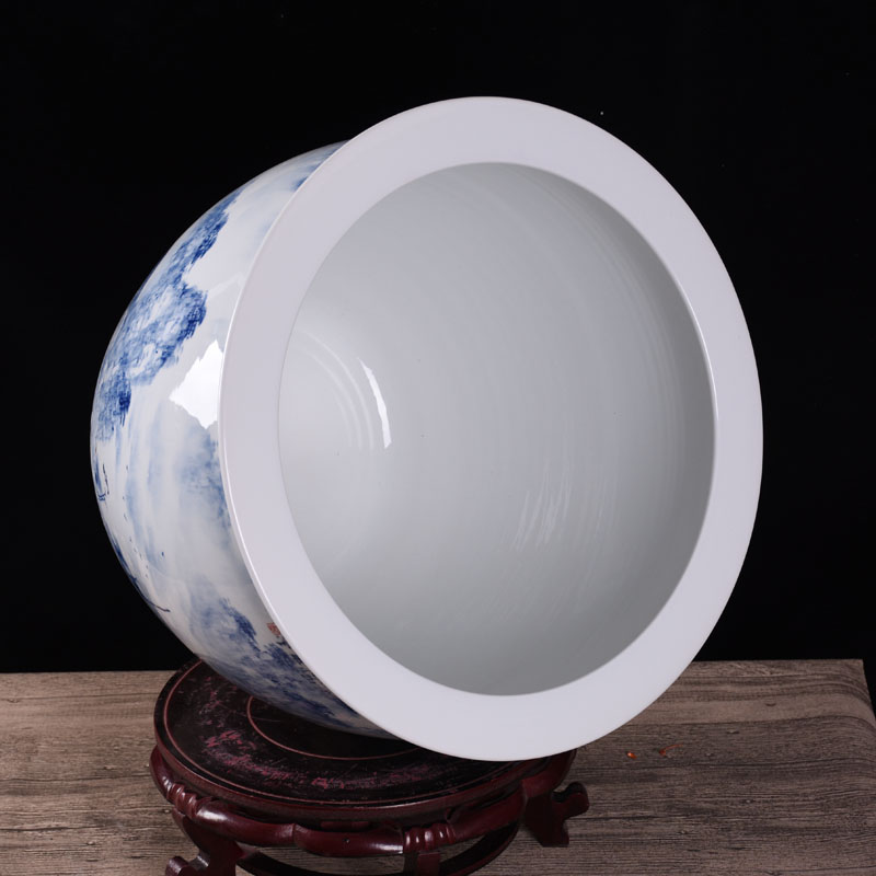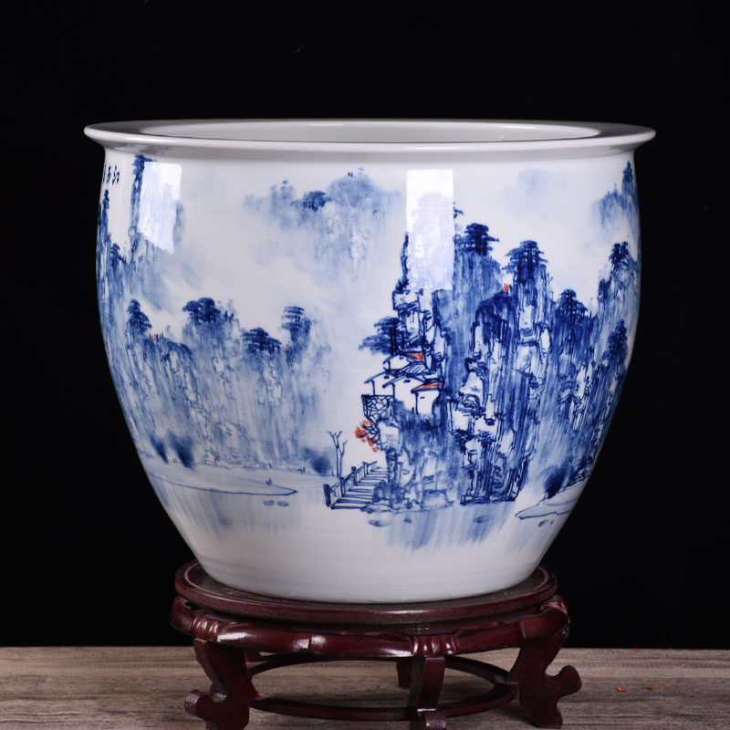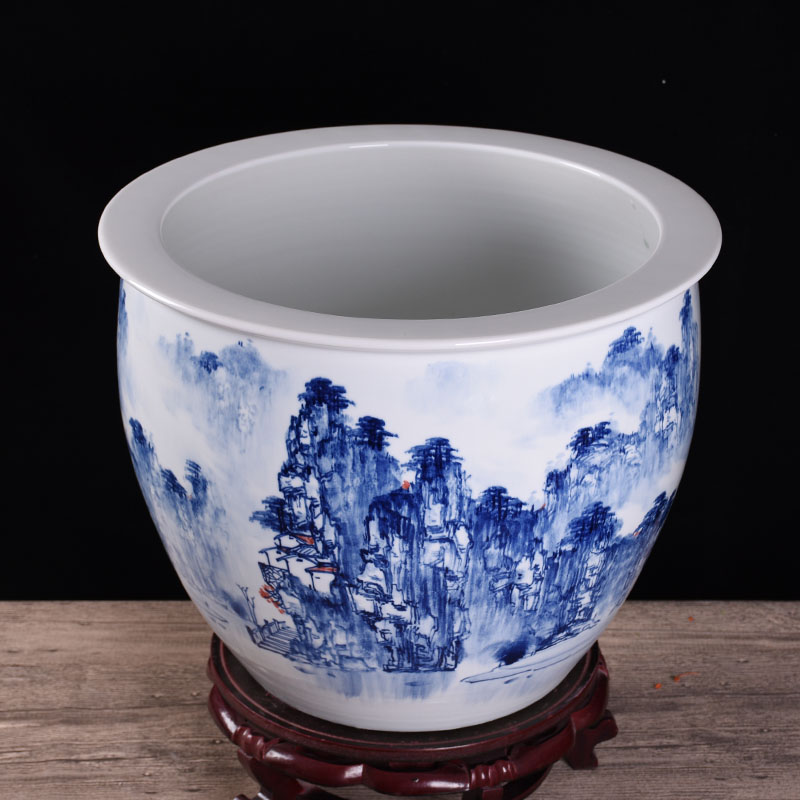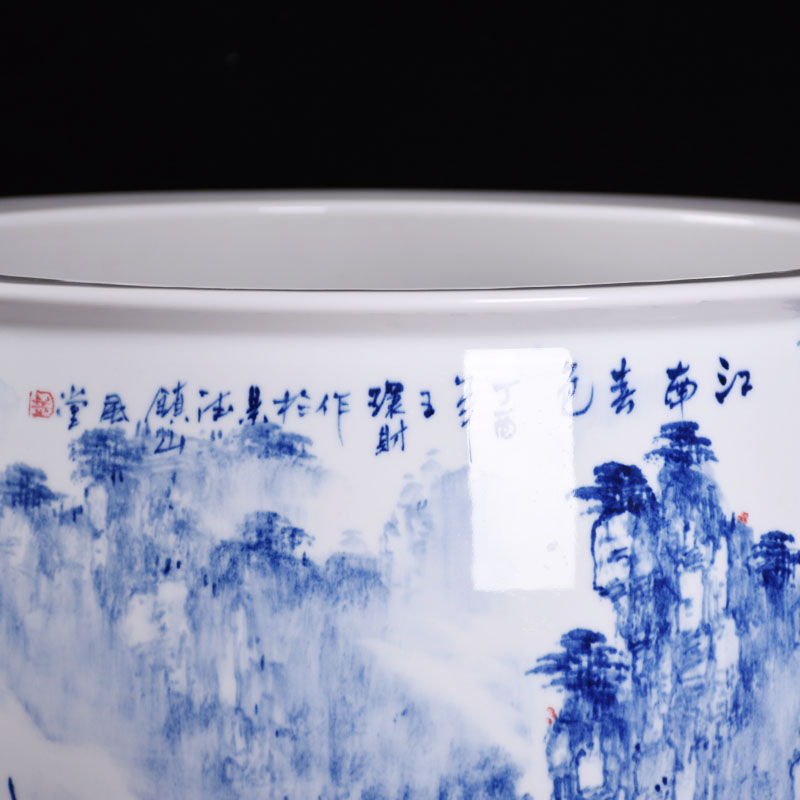 Jingdezhen Wang Huaicai Master's hand painted landscape fish tank lotus flower cylinder Calligraphy And Painting Cylinder Backyard Swing hotel Hotel Stall