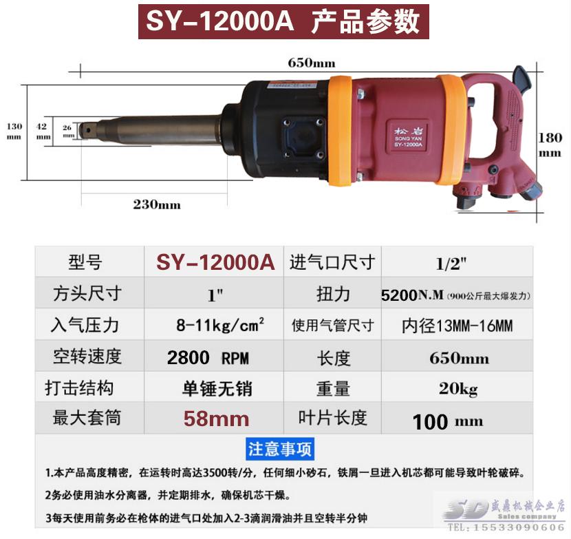 Songyan SY 12000A industrial grade one-inch wind gun high torque pneumatic wrench high wind gun pneumatic wrench