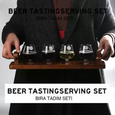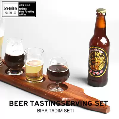 New craft beer tasting cup Bar gourd handle cup holder Beer tasting cup wine rack 6-hole solid wood tray