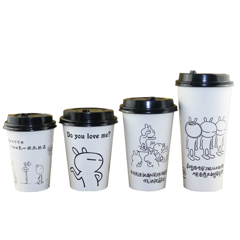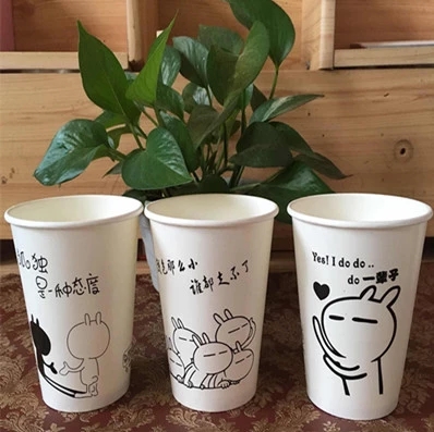 Double-coated paper cups disposable milk tea cups thickened hot drink cartoon coffee cup cola soy milk cup with lid 500