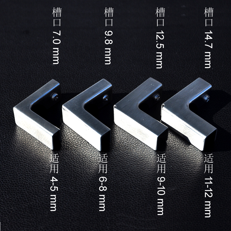 Aluminum clip U8 (clipable 5~8mm glass) Aluminum clip U10 (clipable 10mm glass) Aluminum clip U12 (clipable 12mm glass) Aluminum clip U16(clipable 14~16mm