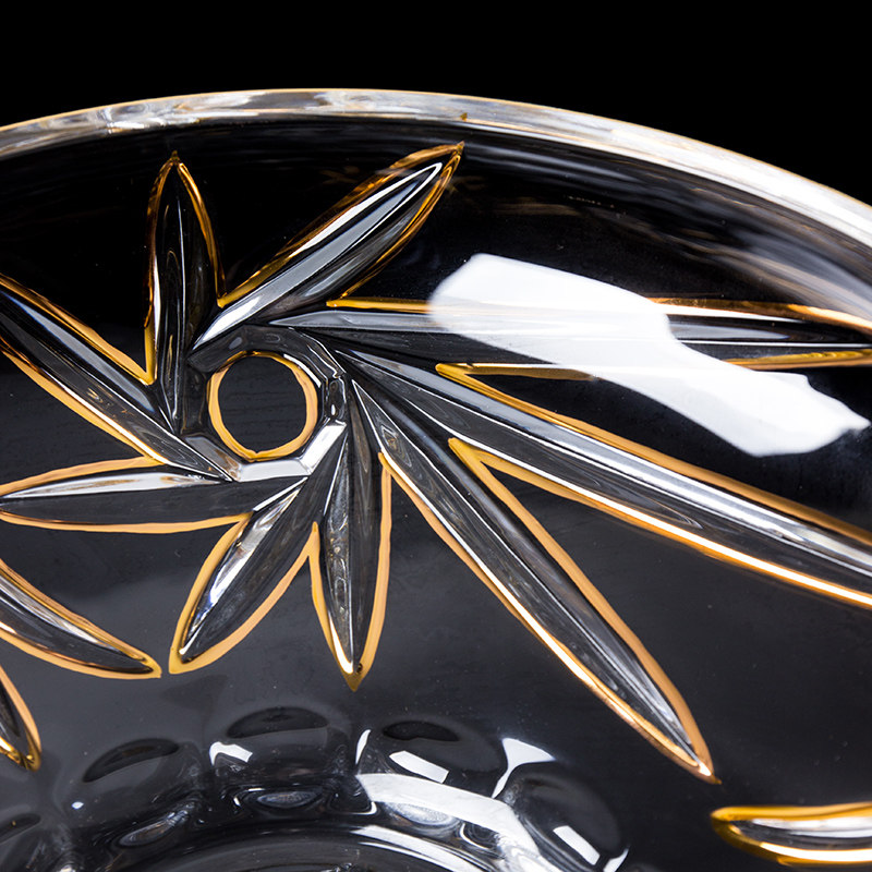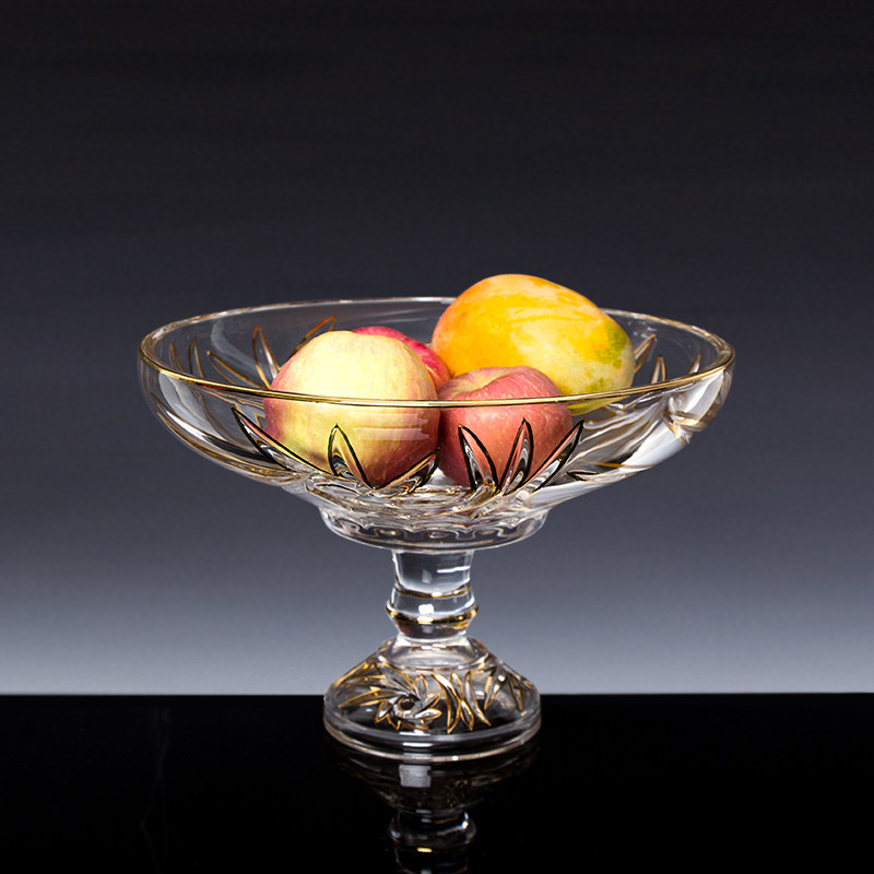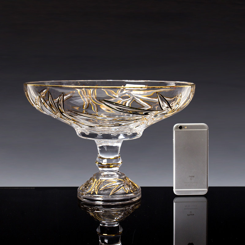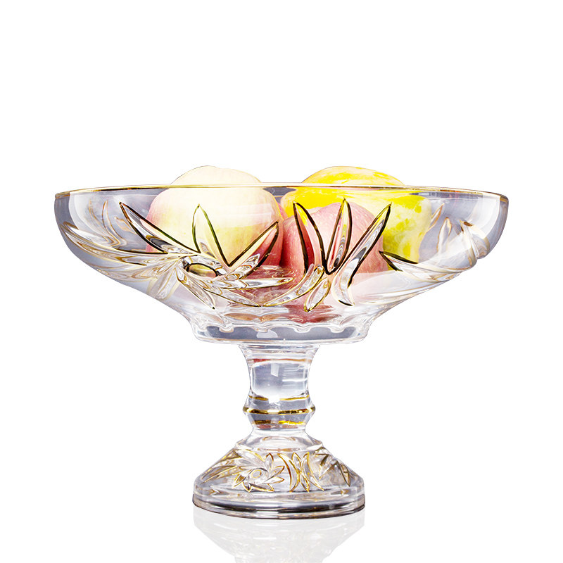 Euroonly Crystal Glass Fruit Pan Large Size High Foot Fruit Dish Sketch Golden Fruit Tray Living Room Decoration Dried Fruit Pan Chen Set