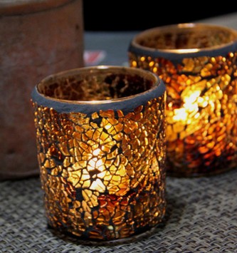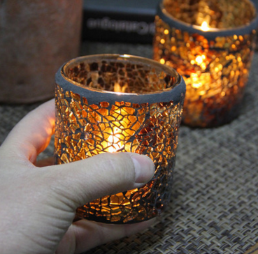 Eurostyle Amber Mosaic Glass Candle Holder Small Round Candle Holder with tea wax to use bar Wedding Banquet-Taobao