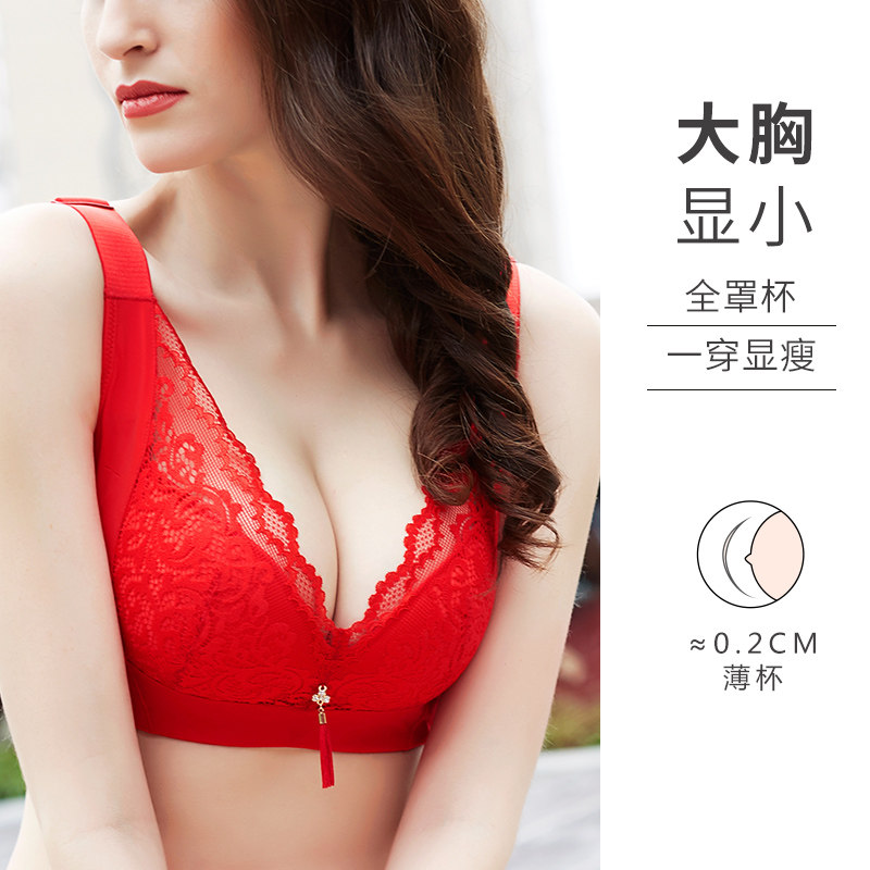Ovisli full cup underwear Women's thin large chest display small bra without rims side collection of secondary milk CDE cup