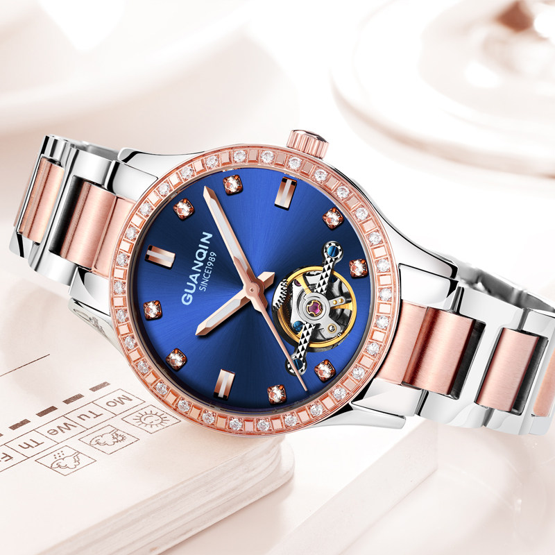 New Canopy Watch Lady Watch Lady Mechanical Watch Fully Automatic Hollowed-out Waterproof Couple's Fine Steel Band Fashion Inlaid Drilling Women Watch-Taobao