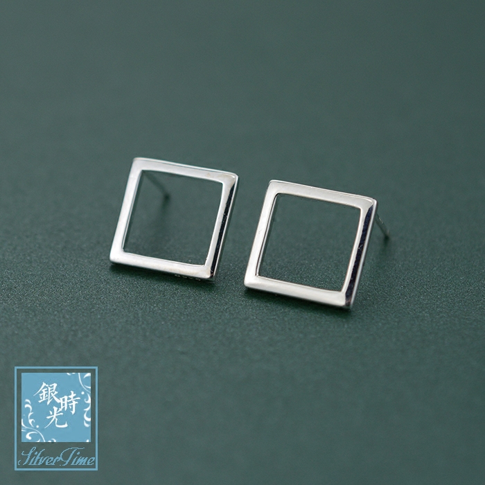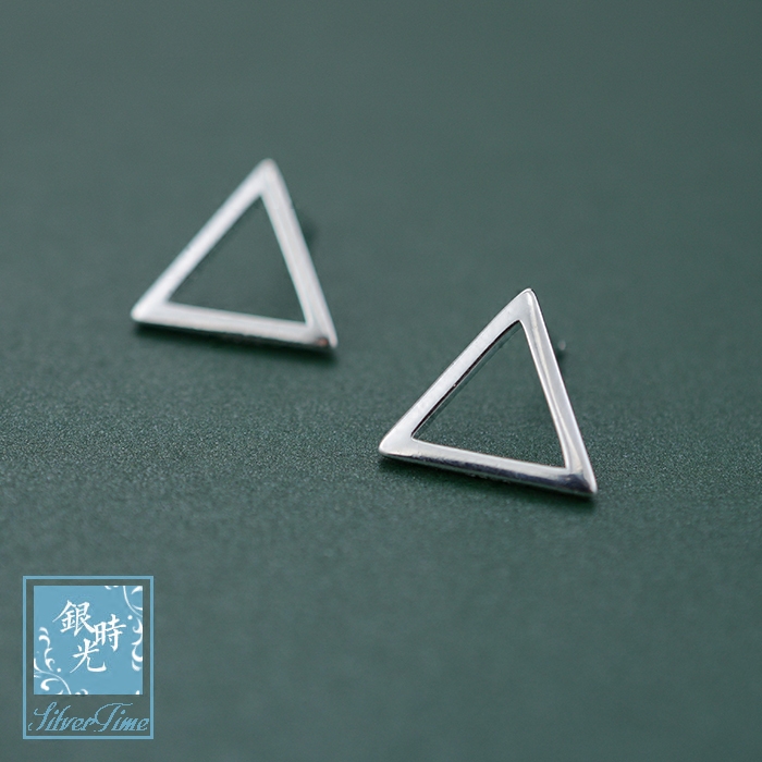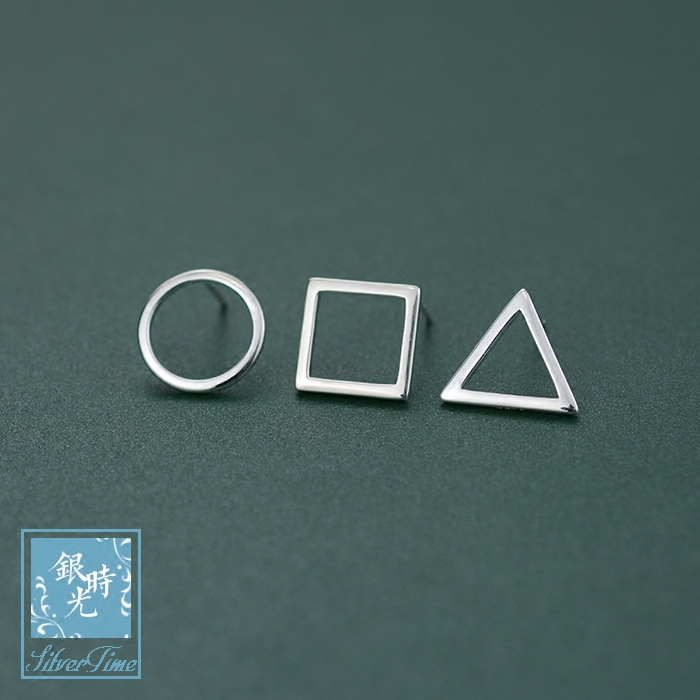 Silver time S925 sterling silver ear needle hollow geometric triangle square round earrings fashion personality earrings female