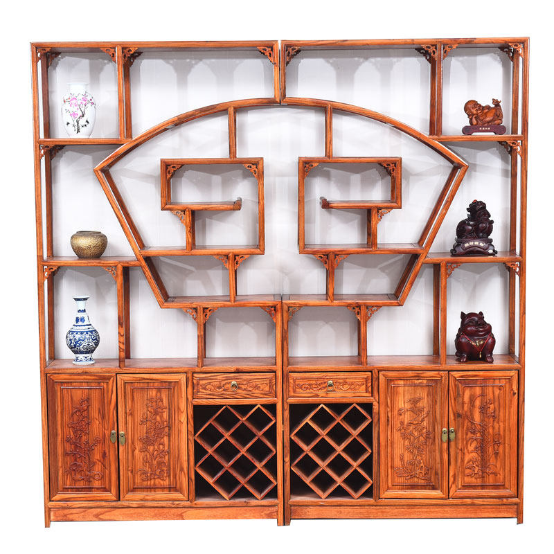Chinese style south elm wine cabinet Bogu rack antique solid wood display rack Duobaoge rack living room partition porch cabinet