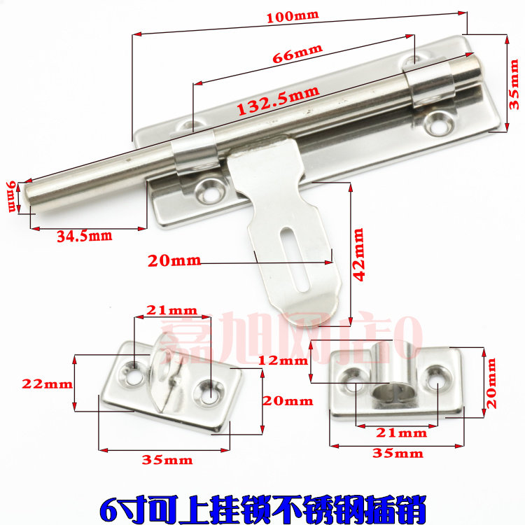 Thickened stainless steel door bolt anti-theft door wooden door surface-mounted bolt dressing room bolt lock door buckle door lock