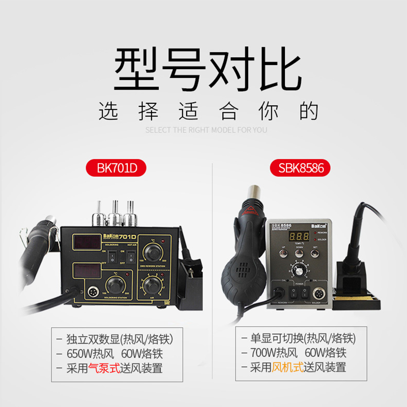 White light hot air gun welding station two-in-one electric soldering iron adjustable temperature mobile phone repair air gun desoldering station 8586 701D