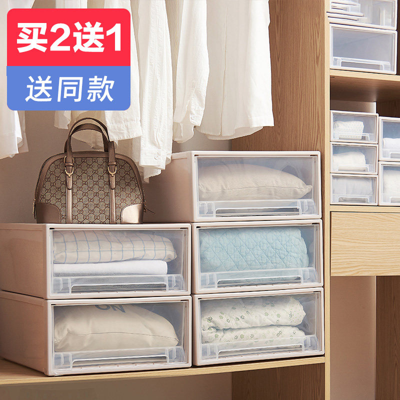 Storage box Drawer storage box Transparent plastic finishing box Wardrobe Clothes partition storage cabinet Wardrobe storage box