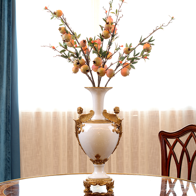 Eurostyle high-end ceramic matching copper livingroom flower flower vase Hotel Villa Clubhouse Decoration Craft Gift Hem Floral