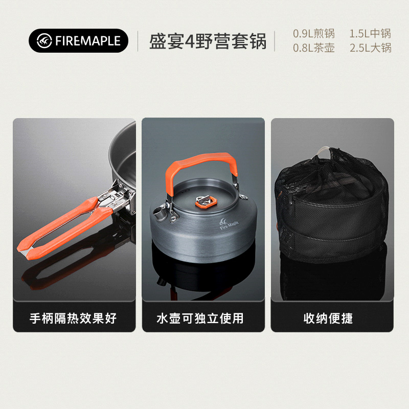 Fire Maple Feast 4 Outdoor Pot Camping Camping 4-5 People Cover Pan Portable Folding Cookware Pan With 0 8L Teapot