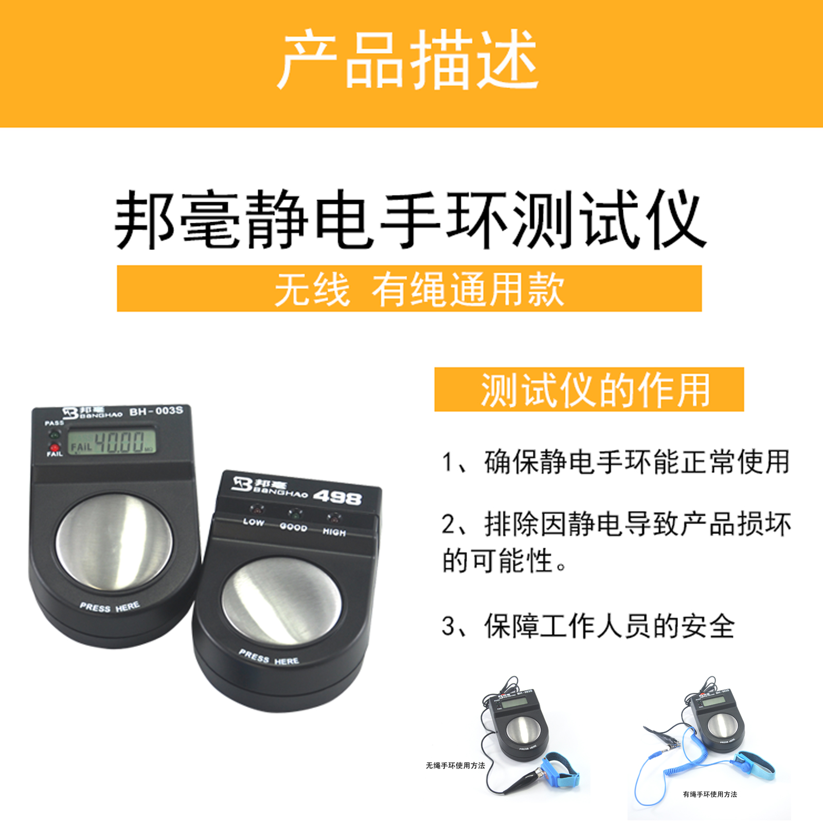 Wireless electrostatic belt (4 packs) Corded electrostatic belt (4 packs) Countless display 498 tester digital display BH-003S tester countless display 498 tester ordinary invoice digital display BH-