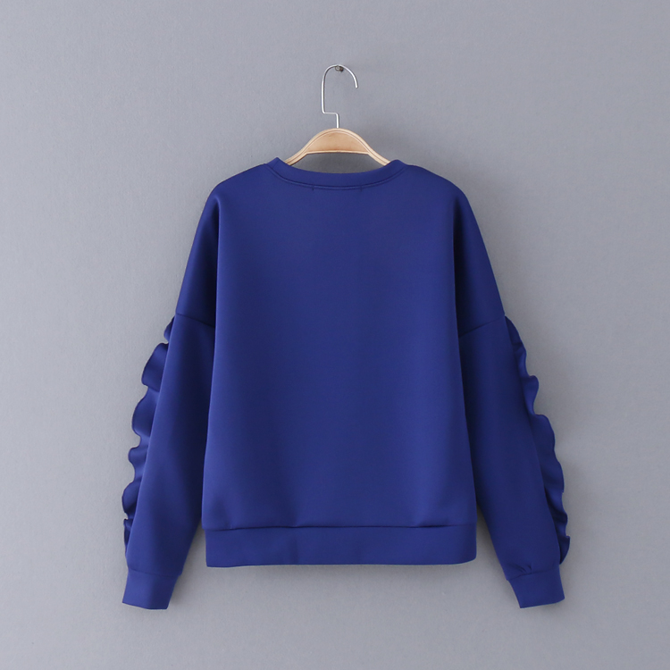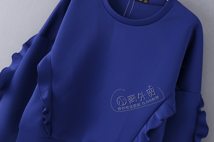 G096 temperament women's autumn and winter new solid color round neck lotus leaf lace long-sleeved top women's wild thick cotton T
