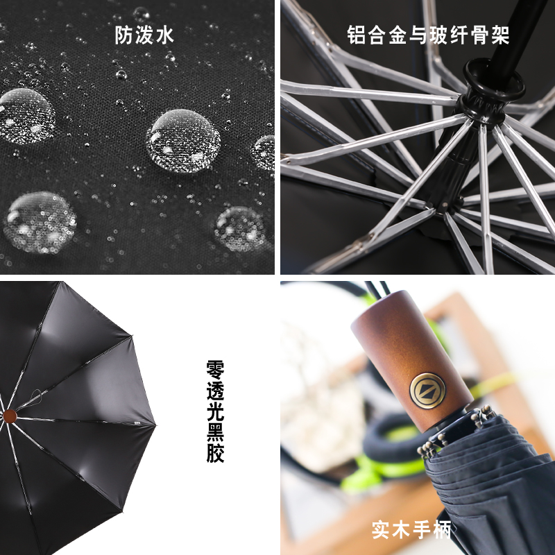 Japan ten bones business windproof automatic sunny umbrella three folding men's sunscreen and UV protection reinforced parasol women