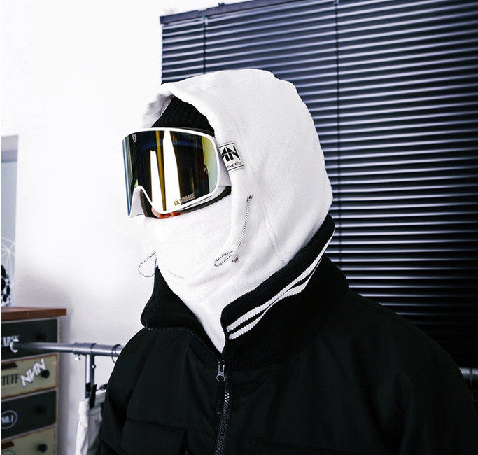 NNN South Korean ski hat protective face neck Baotou integrated black and white pink warm grip suede anti UV warm