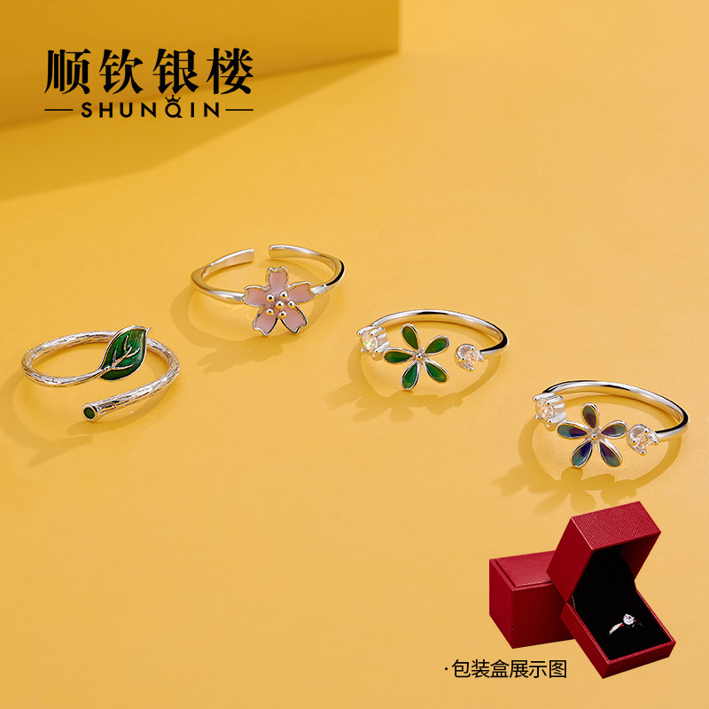 Shunqin Silver Tower 925 sterling silver ring fresh and simple female ring opening Korean fashion ring Girlfriend birthday gift