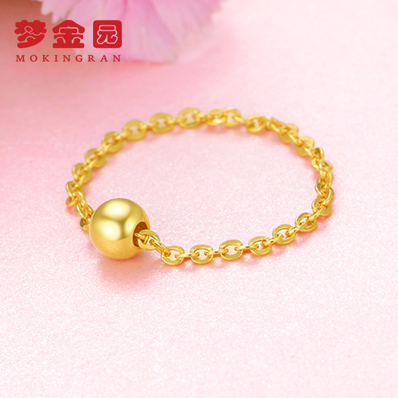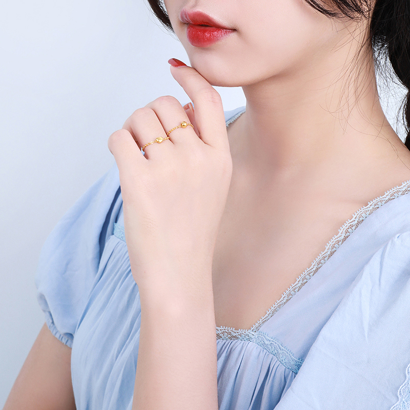 Dream gold Garden gold ring Small gold beads Full gold transfer bead tail ring Vegetarian gold birthday gift to the lady