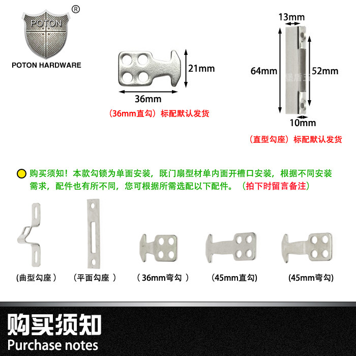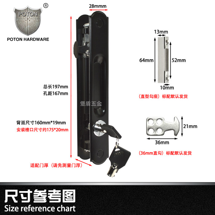Stainless steel bifacial hook lock balcony Living room floor aluminium alloy window door moving door hook lock bar lock with key