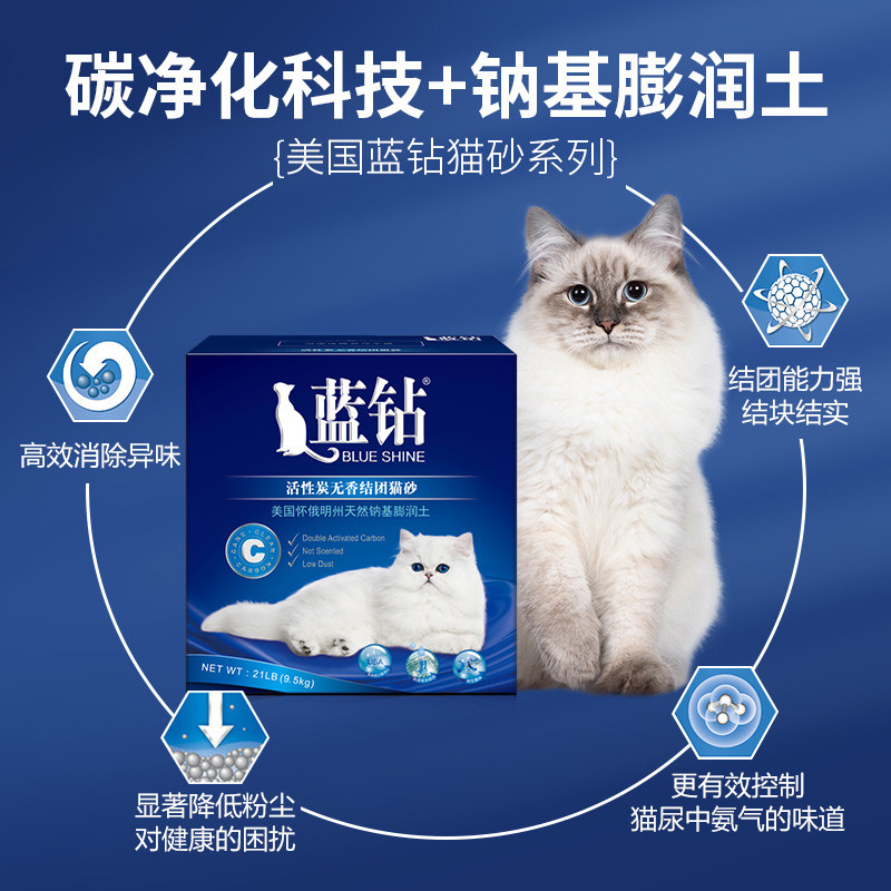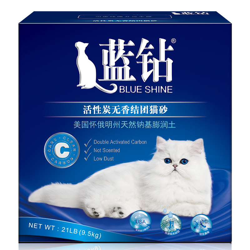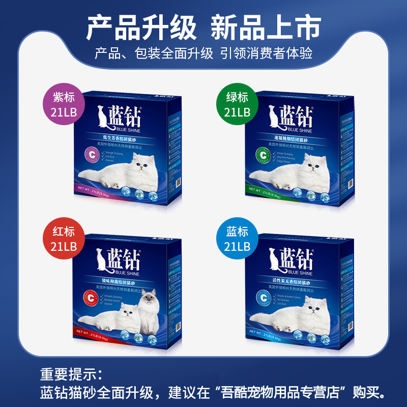 US imported blue diamond cat litter Blue and white label double activated carbon cat litter 21 pounds bentonite cat litter 24 provinces