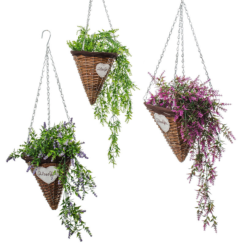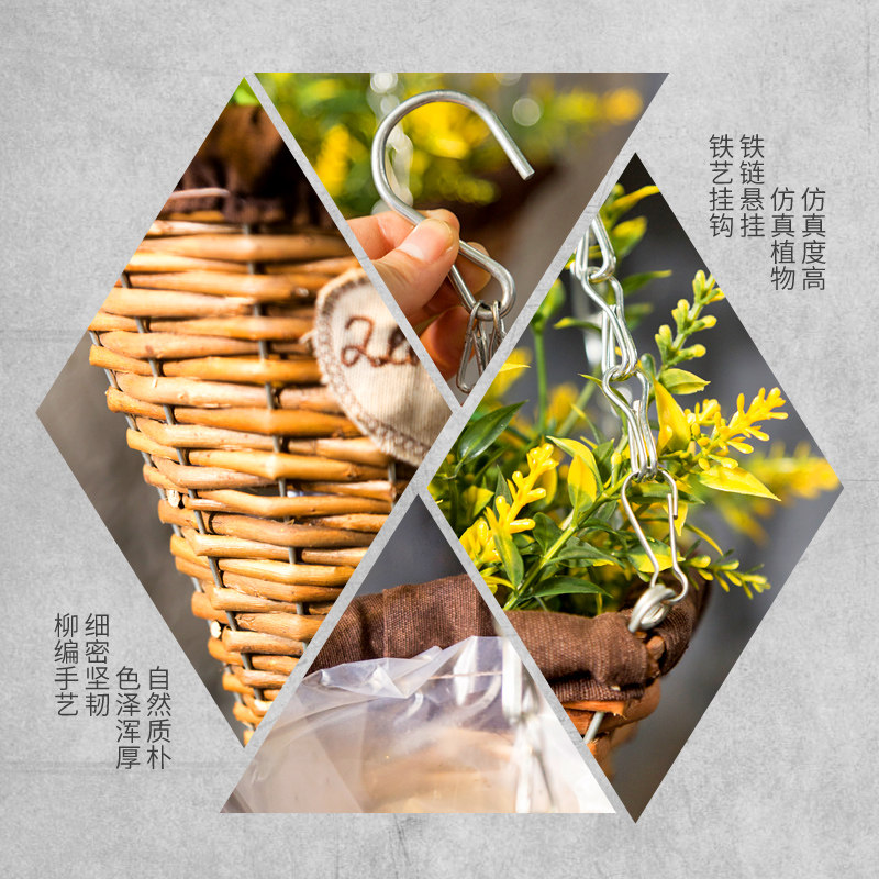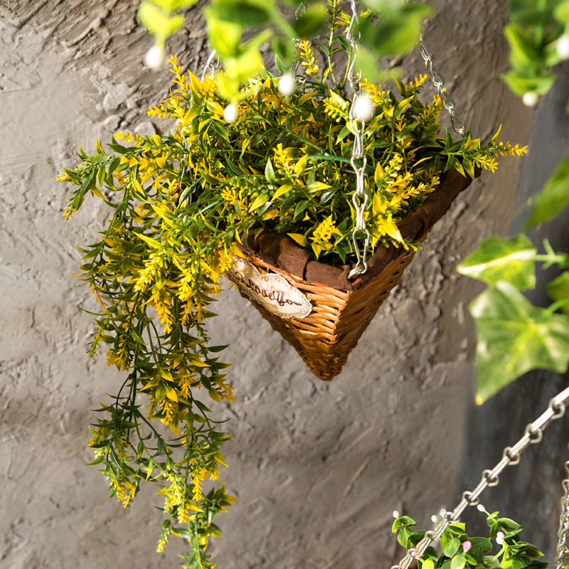 3 hanging baskets combination square mouth pointed bottom hanging basket Yellow malt vine Man square mouth pointed bottom hanging basket combination Green horn leaf green malt Yellow malt 3 hanging baskets combination Green horn leaf hanging vine round mouth pointed bottom hanging basket combination