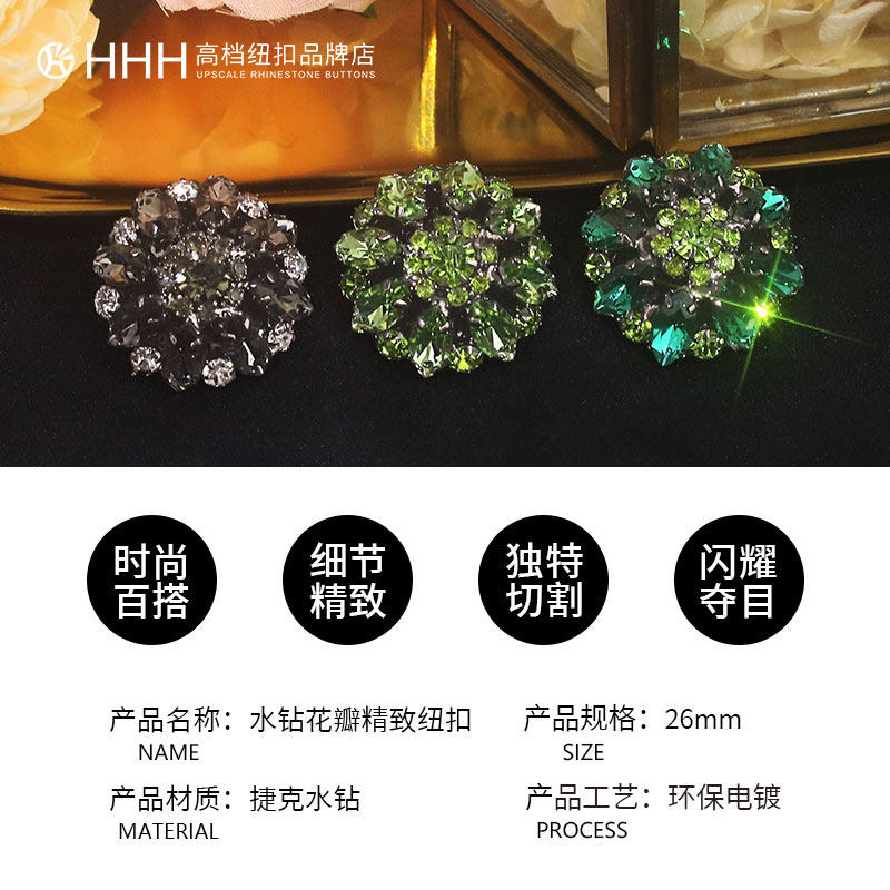 HHH buttons High-end Luxurious Water Drill Jacket Coat Big Coat Dress Clothing Leather Grass Trim of the Leather Buttons 100 hitch