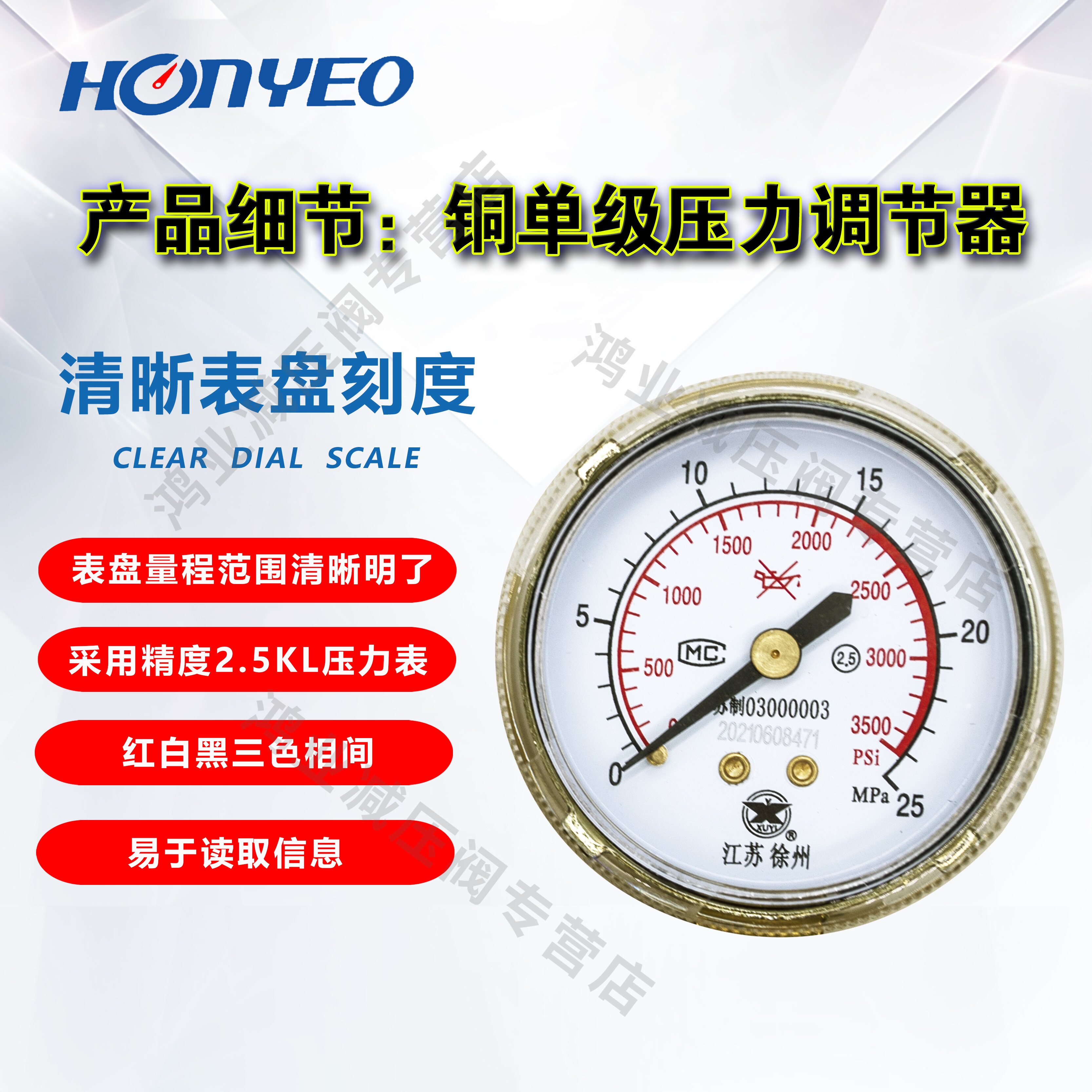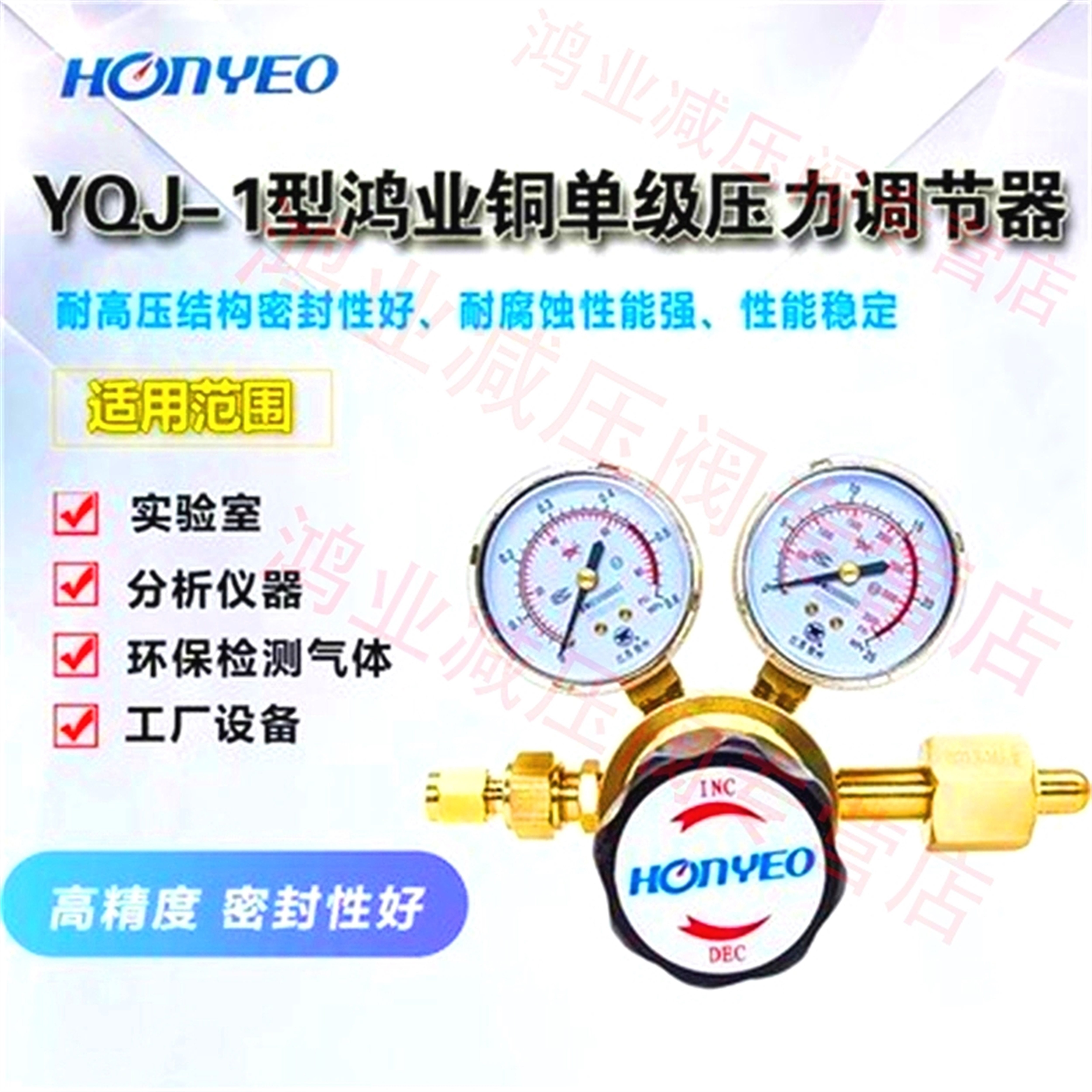 Xuzhou Hongye pressure reducing valve YQJ-1 copper single stage pressure regulator methane standard gas nitrogen pressure reducer Hondao