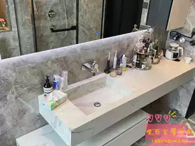 Natural imported marble rock board background wall Wash basin countertop Dining table over the bar passageway