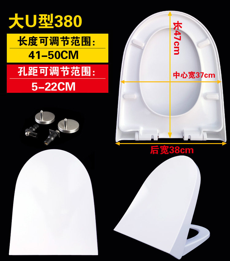 Large U type 38 ultra-wide toilet lid old anti-smart horse lid slow down mute thickened PP sitting poop cover plate universal