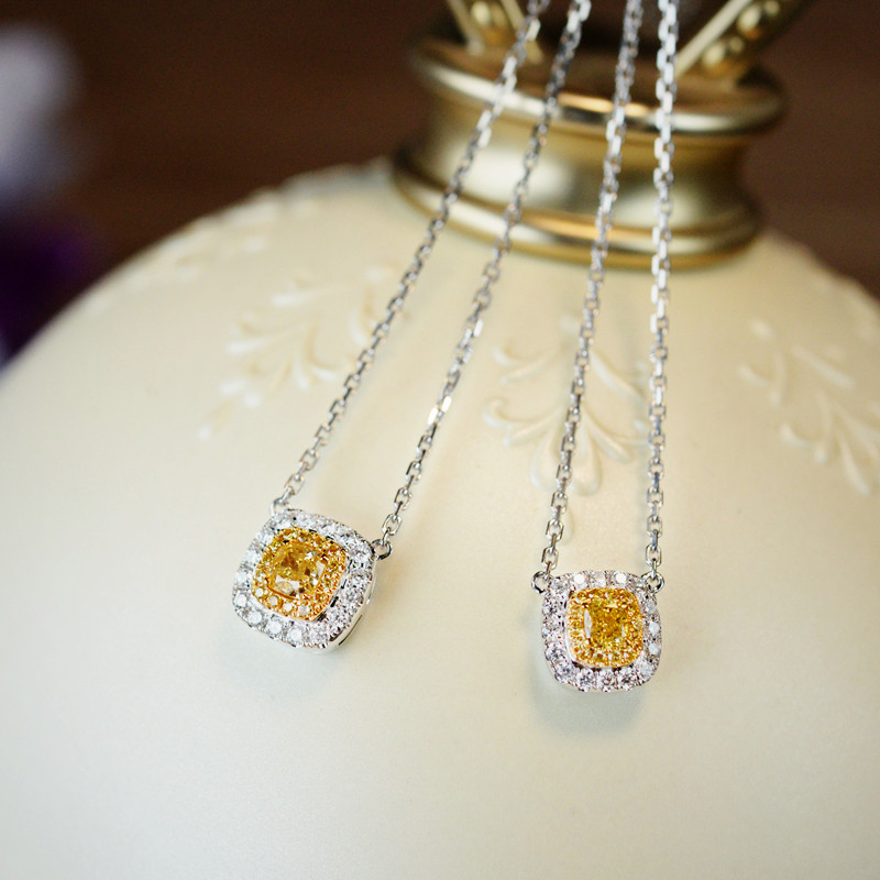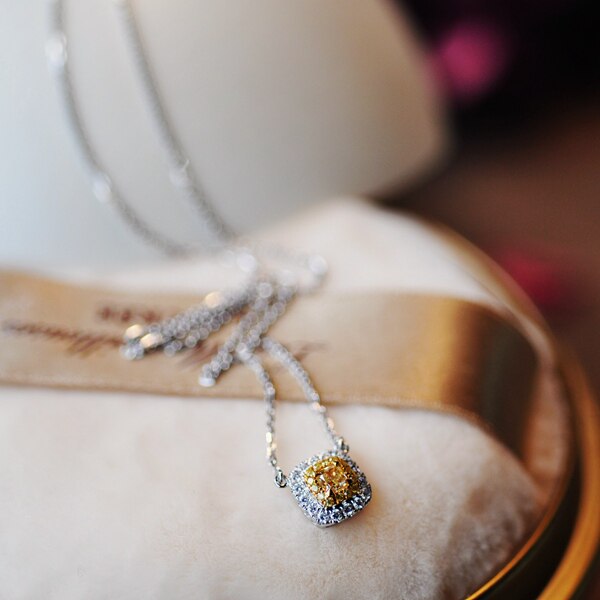 Weijiao rare yellow diamond ~ exquisite natural diamond square pendant 18K platinum one necklace