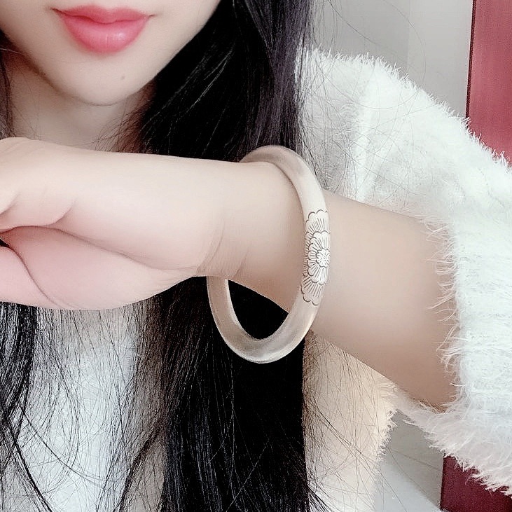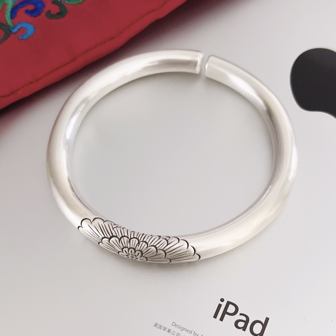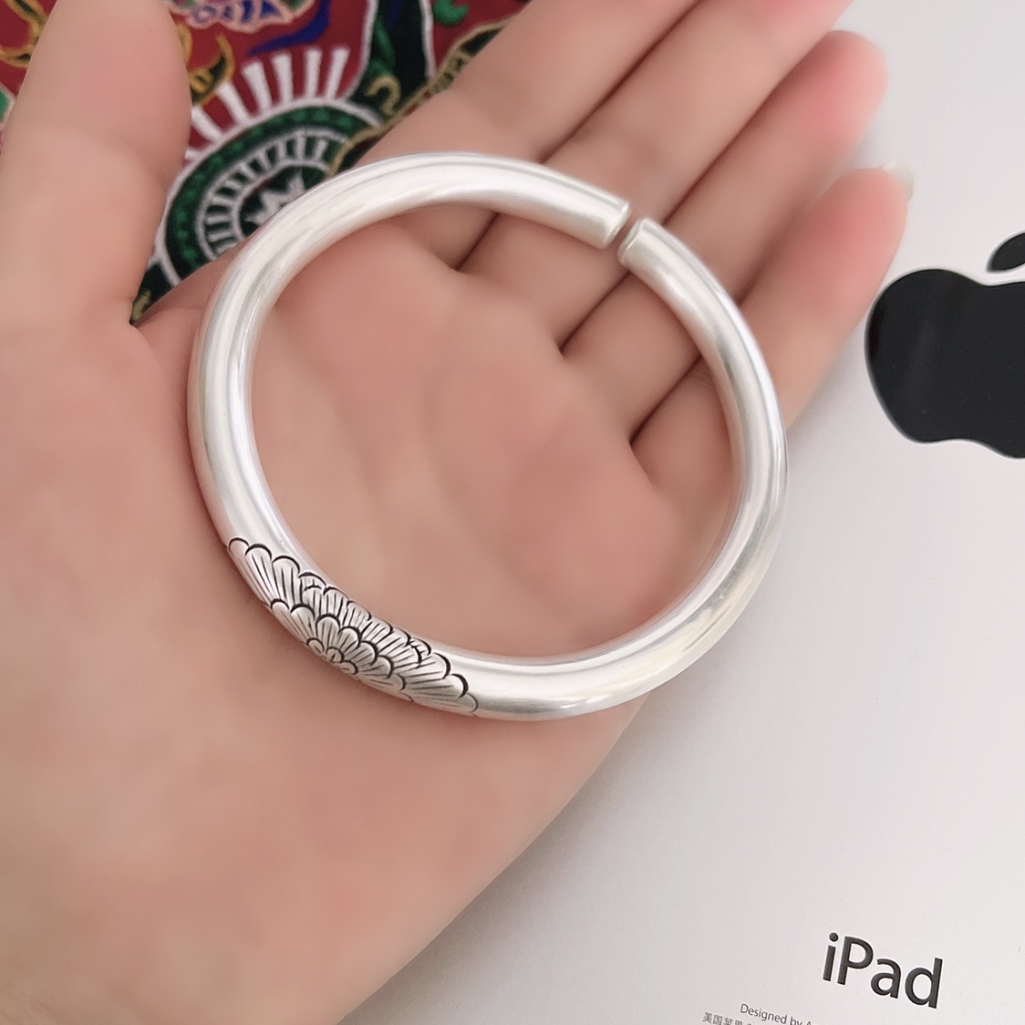 Original design Peony heavy industry foot silver solid hand carved 999 sterling silver bracelet Female silver jewelry niche ins