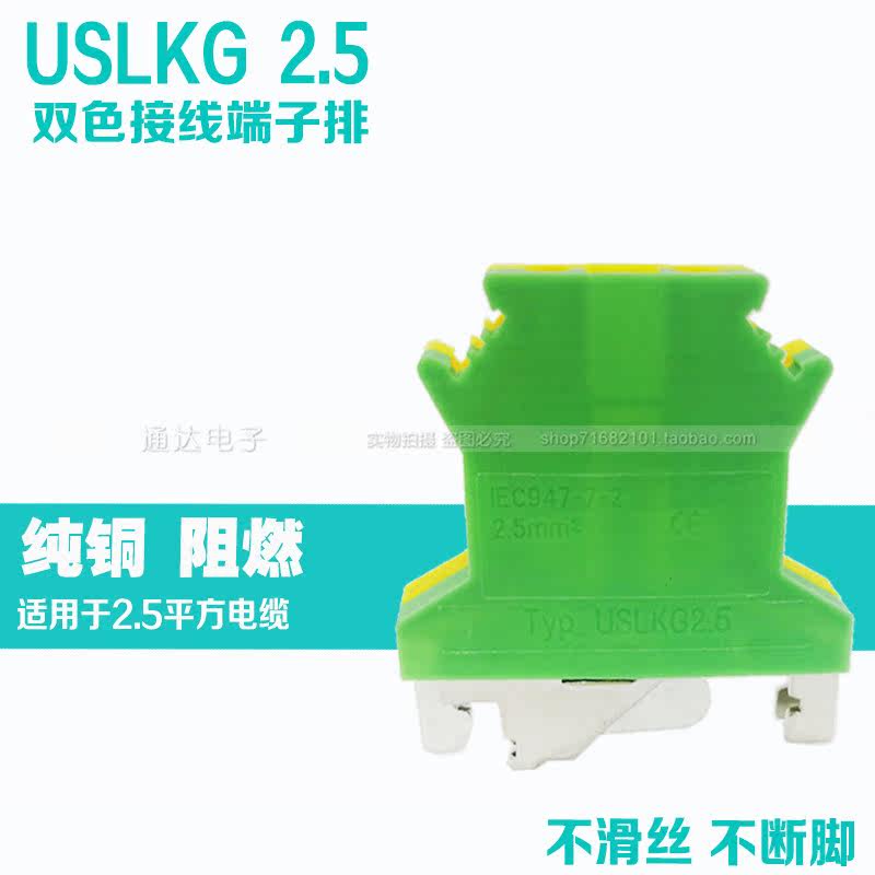 Wiring terminal USLKG2 5 yellow green ground terminal row UK2 5 square rail straight-through voltage terminals