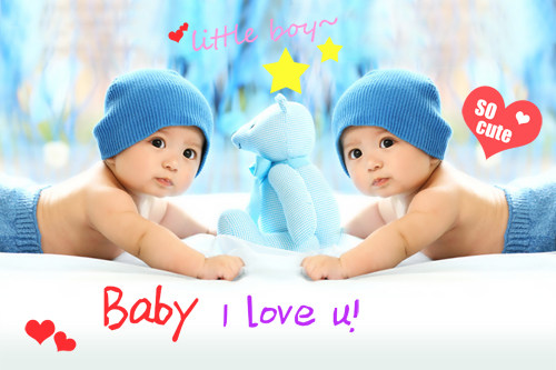 Cute twin baby doll poster male and female baby twin baby picture wall sticker Pregnant woman fetal education bb painting sticker