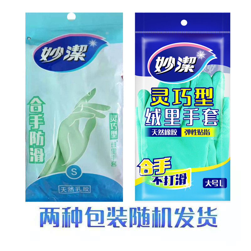 Miaojie dexterous type waterproof gloves rubber housework rubber kitchen dishwashing latex washing clothes artifact woman