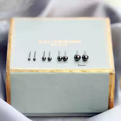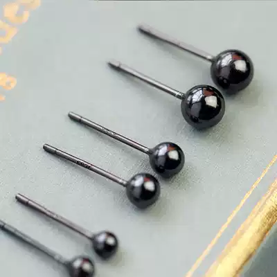 Small Z excellent minimalist cos style mini ball Black Bean S925 sterling silver ear needle Joker men and women models