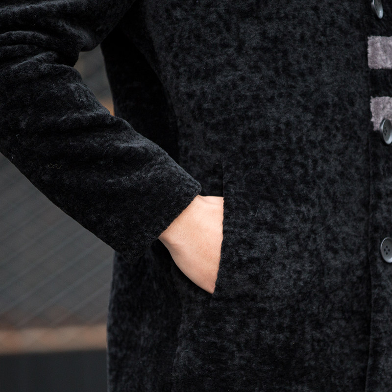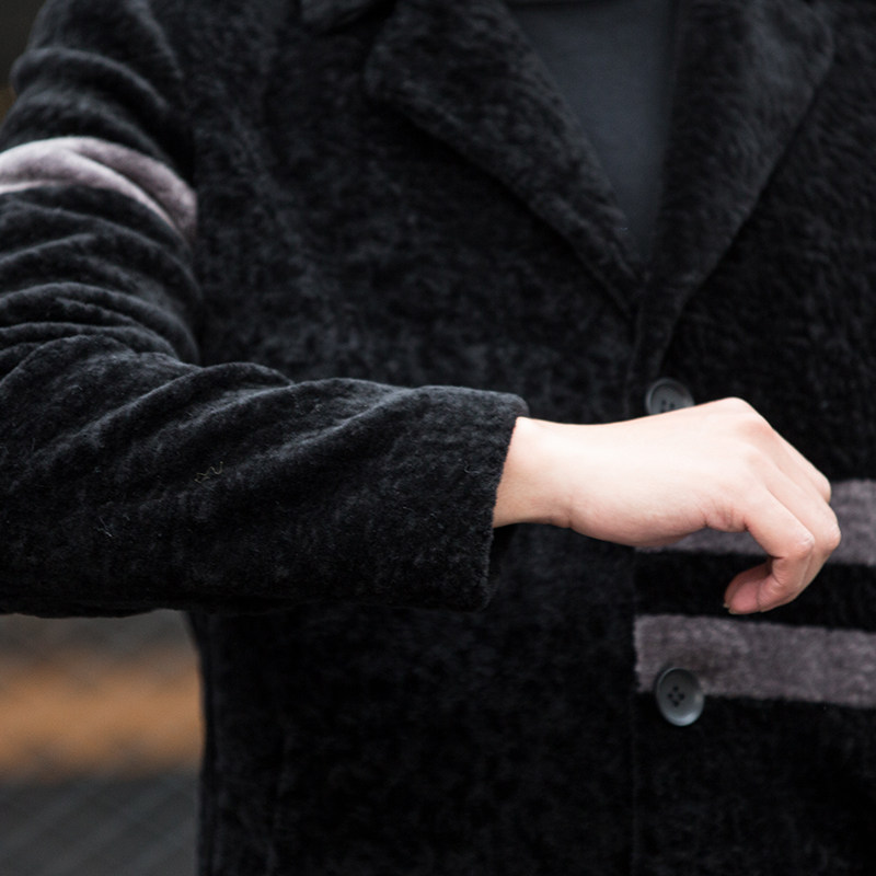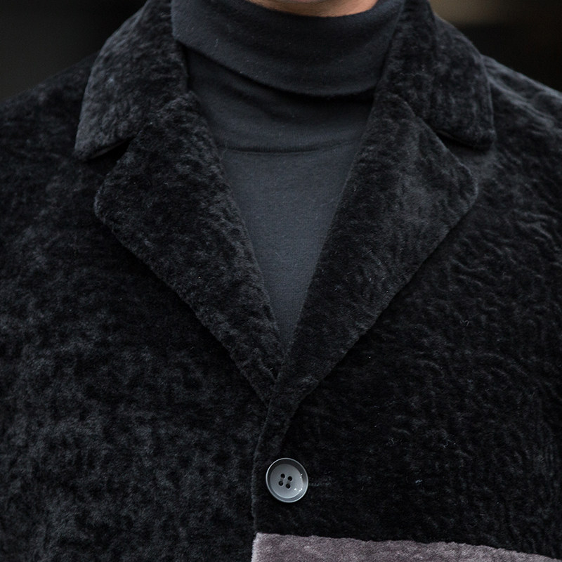 Suit collar sheen cut velvety coat men's winter medium long version leather hair integrated body Haining upscale men's leather grass jacket