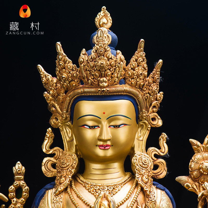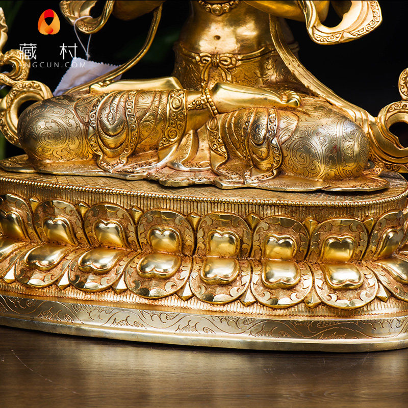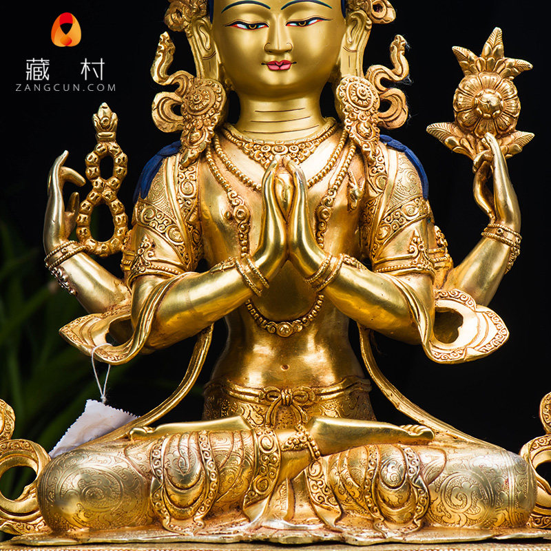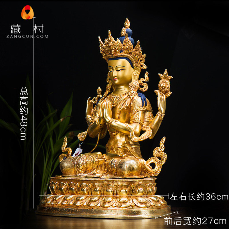 Four-armed Guanyin Tibetan Buddhism Tantric ornaments Nepal boutique 15-inch pure copper gold-plated four-armed Guanyin Buddha statue