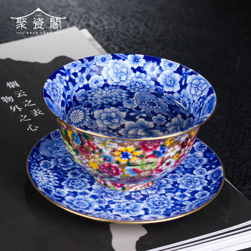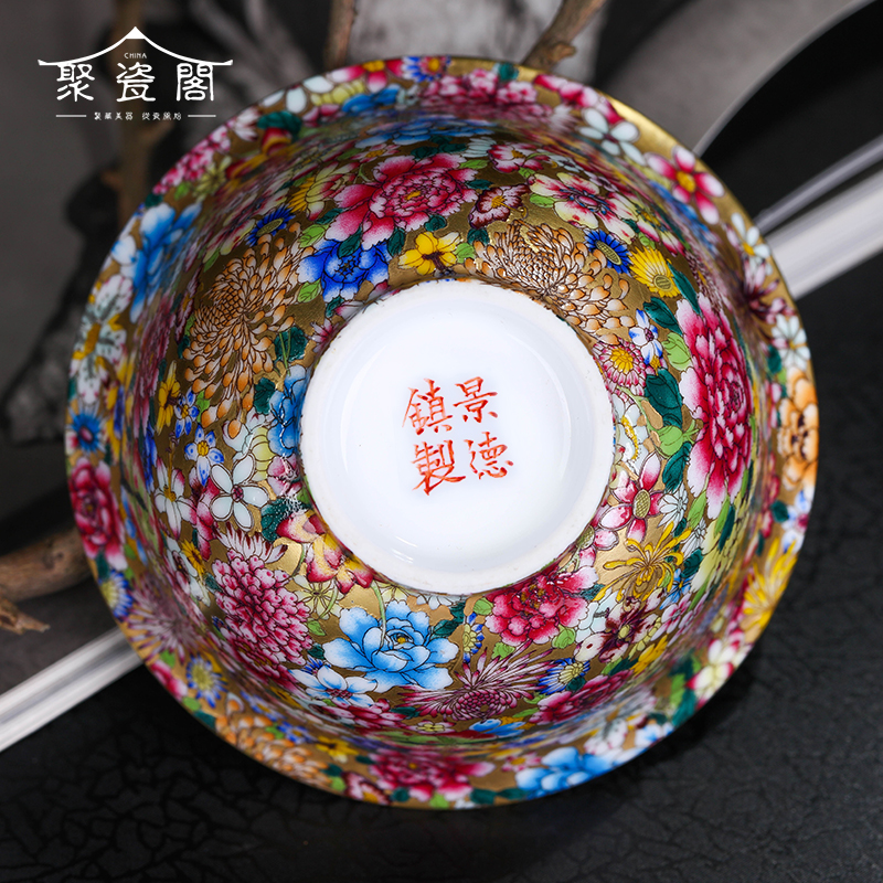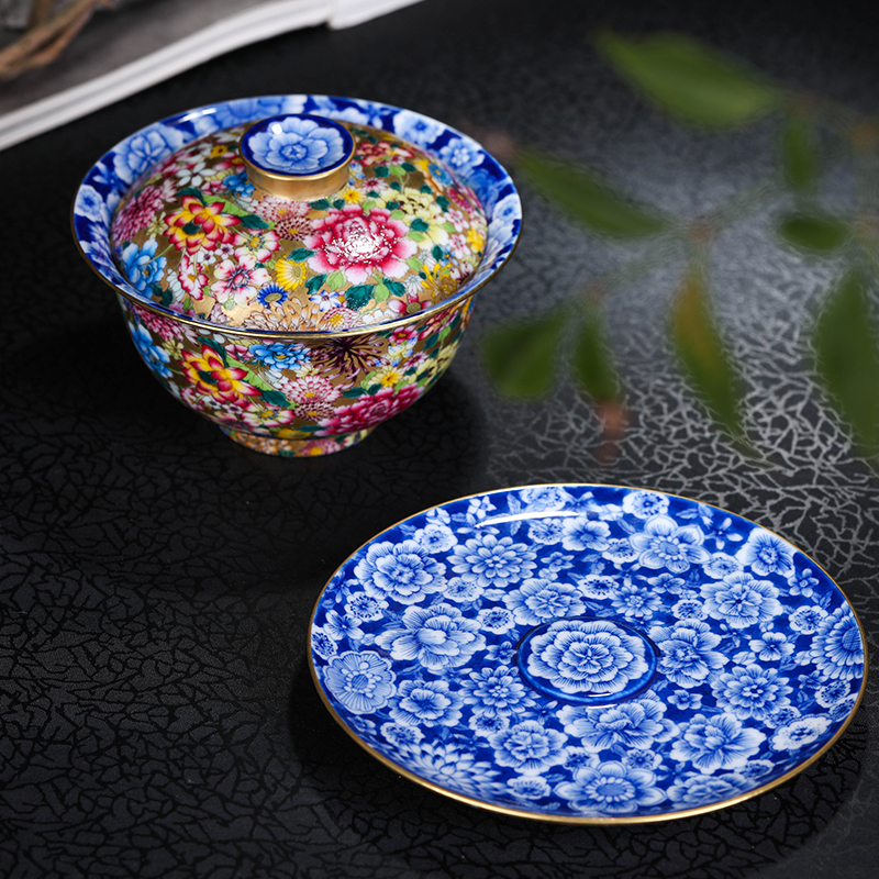 Jingdezhen Ceramic green flower Porcelain handmade hand-painted enamel color pink Wanhua cover Bowl Toast Tea Tea Tea Bowl Kongfu Tea Furniture