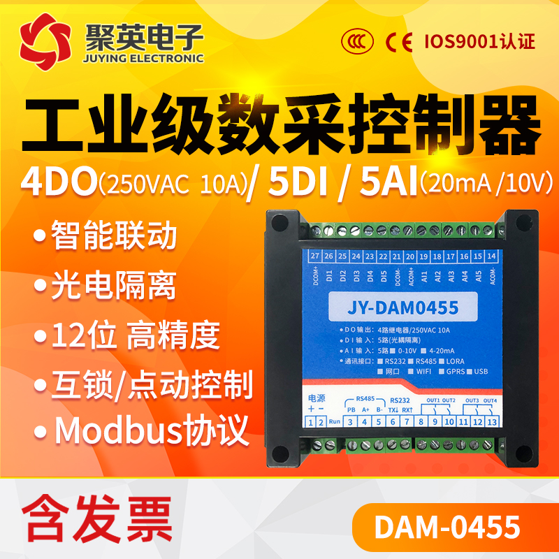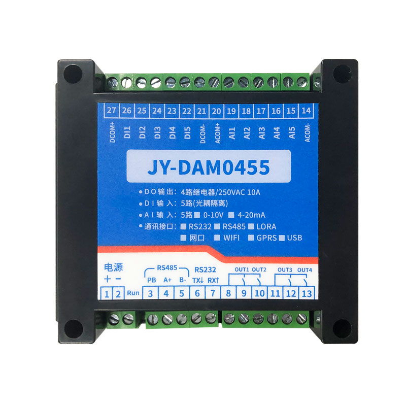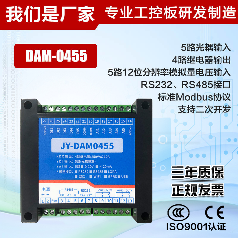 DAM0455 relay output 4-way 5-way optical coupling input 232485 dual serial port communication Modbus protocol usb
